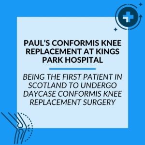 Paul became the first patient in Scotland to undergo daycase Conformis Europe GmbH Knee Replacement Surgery at Kings Park Hospital.