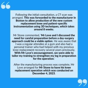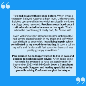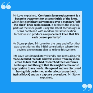 Gavin Love, Consultant Orthopaedic Surgeon and leading specialist in the groundbreaking Conformis surgical technique carried out the procedure